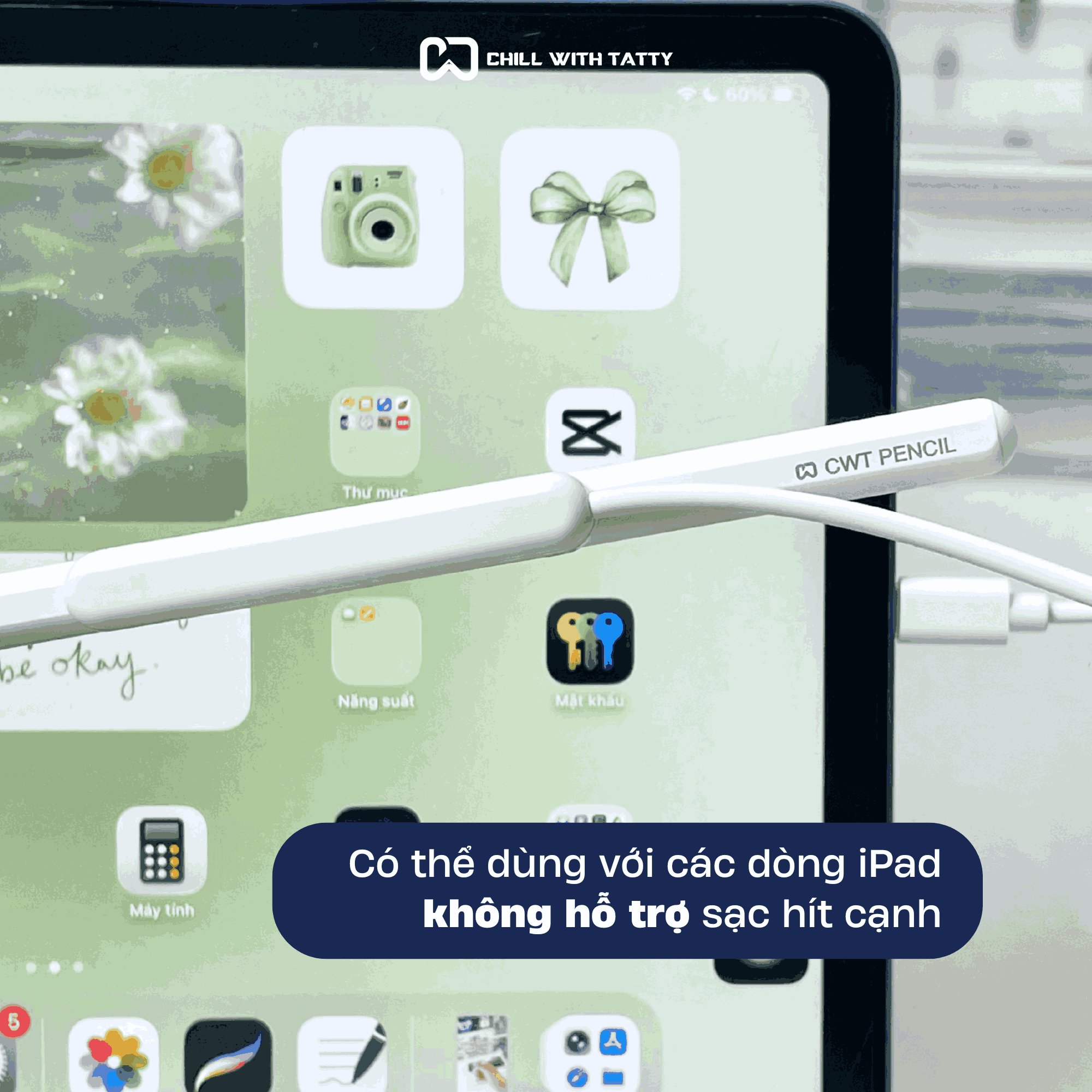 - Tương thích rộng: Sử dụng được cho các dòng bút cảm ứng/ iPad không hỗ trợ sạc không dây.
